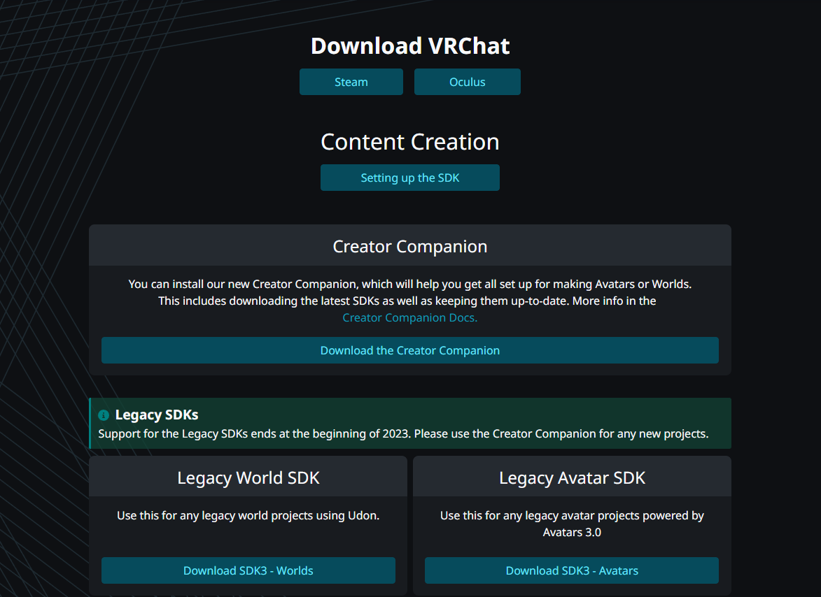 vrchat에서는 2023년부터 기존의 Legacy SDK의 지원을 종료하며 VCC를 사용하는 것을 권장하고 있습니다.