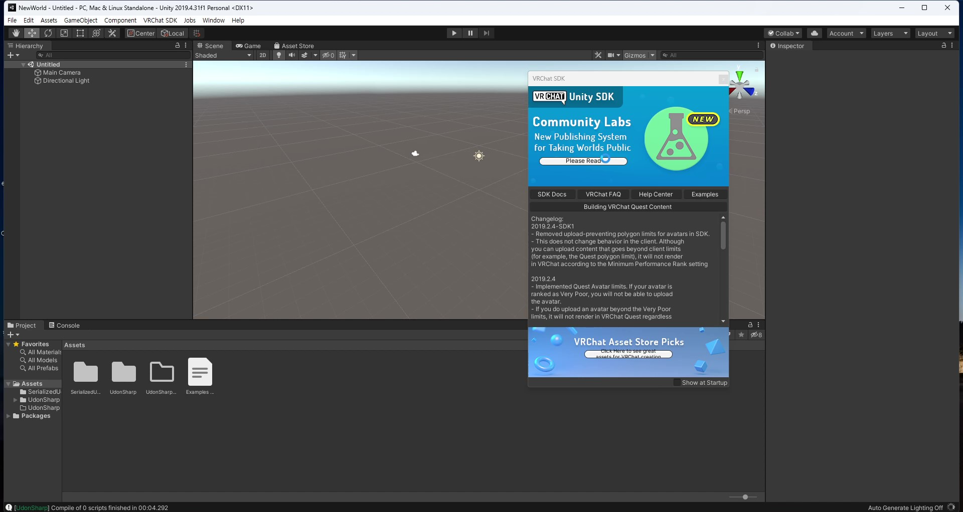 화면의 오른쪽에 보이는 VRCHAT SDK - Base, VRCHAT SDK - Worlds 등