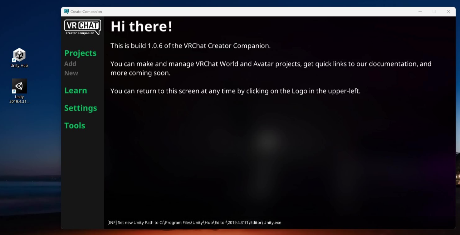 VCC는 vrchat creator companion의 약자로 말 그대로 vrchat에서 제공하는 개발자 도구 모음 툴입니다.