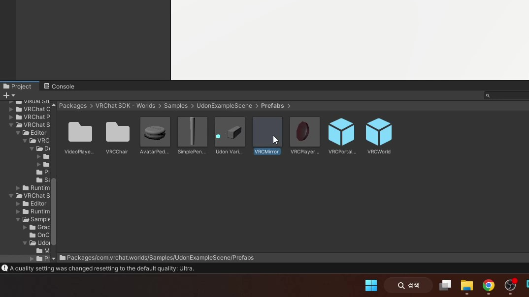 Project 검색창에 VRCWorld를 검색한 것과 동일하게 VRCMirror를 검색하거나
