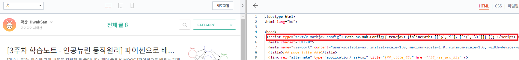 - 각 포스팅 마다 수식 입력을 위한 스크립트를 HTML 모드로 입력하는 방법