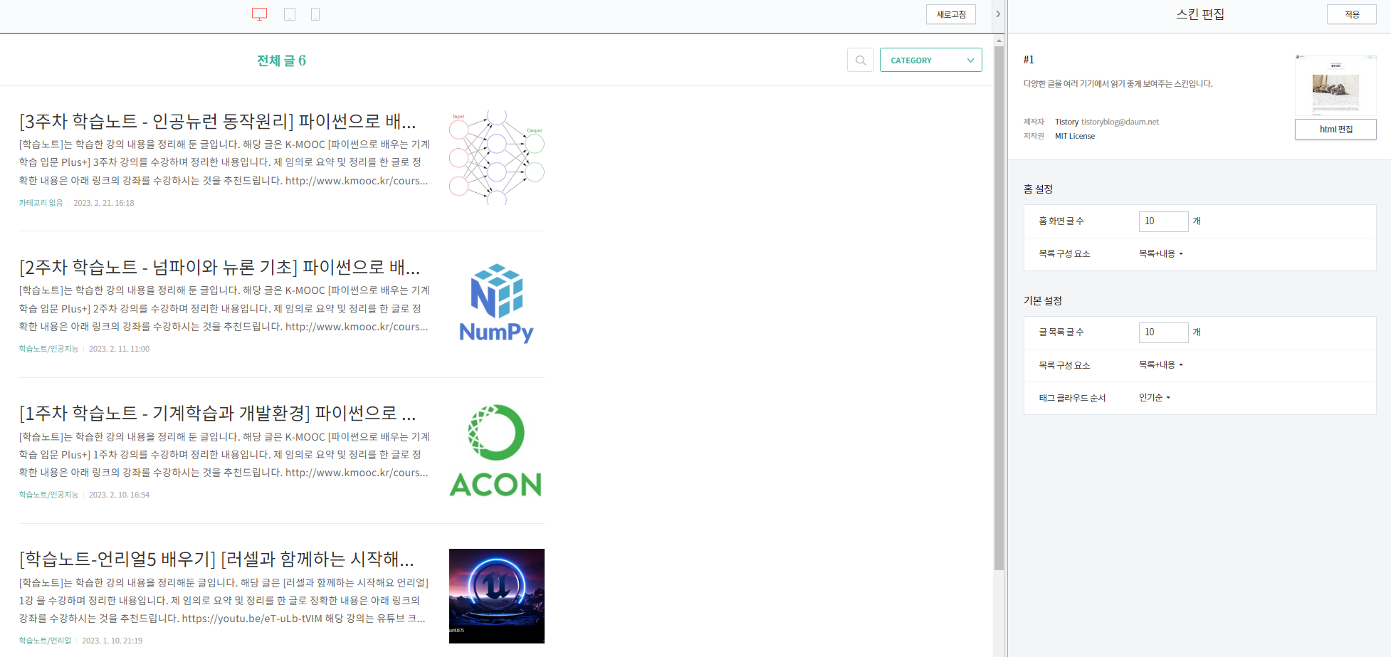 1. 블로그 관리의 스킨 편집에 들어갑니다.